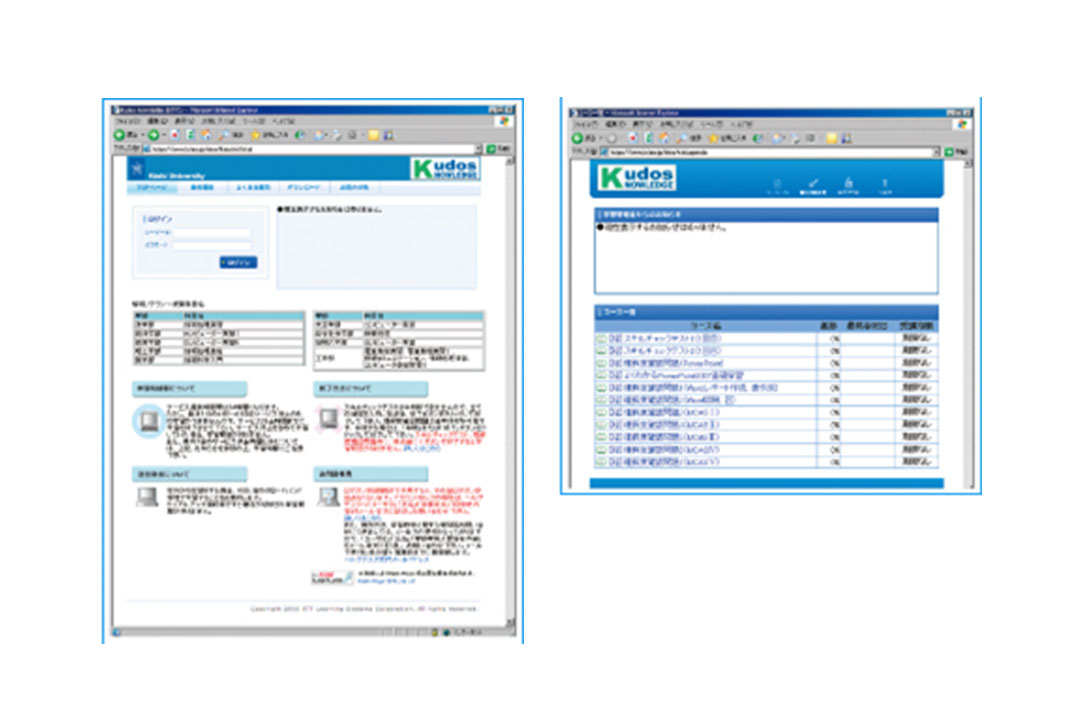 しかし双方の協力関係が始まって以来、授業レベルは年々ブラッシュアップ。「スキル格差をなくし学生の実務スキルをもっとアップさせたい」との想いから、近畿大学はeラーニング導入を決意。その際、NTT ExCパートナーが開発したeラーニングシステム『ELNO』を選択しKudos KNOWLEDGE が誕生しました。
