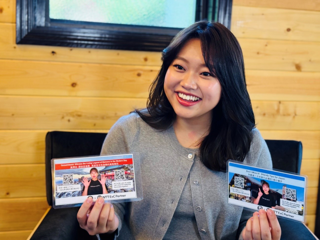 「正直、最初は自分がアバターになるなんて想像できませんでしたが、でもお客様が“あれ、本人だ!”って気づいてくださったり、『英語も中国語も話せるんだね』って驚いてくれたりして、不思議な気持ちと同時にすごく嬉しかったですね。初めにアバターを作る際の撮影も難しくなく、数十分で撮影が終わって、“え、もう?”って驚いたくらいです。」