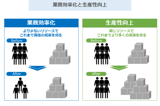 ちなみに業務効率化と生産性向上は、近しいニュアンスで語られるケースも多いのですが