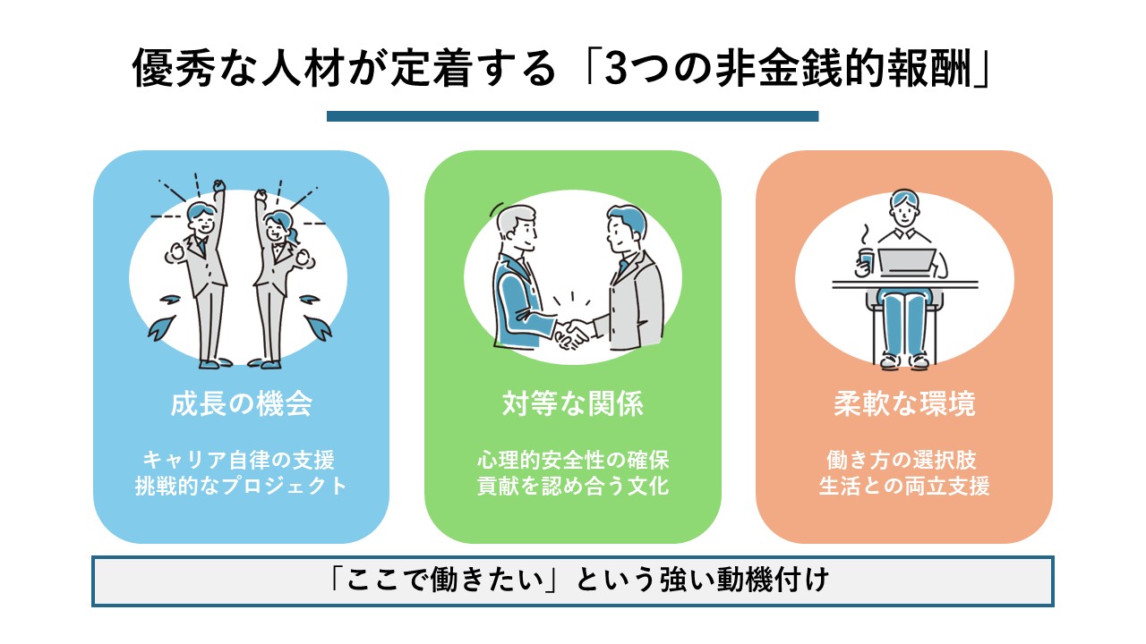元ニトリの人事責任者の方から、現場マネージャーや人事の立場で実践されてきたノウハウを対談形式でご紹介します。また本編とは別に、人材定着につながる打ち手のポイントやエンゲージメント向上4つの視点をまとめた解説動画もご覧いただけます。