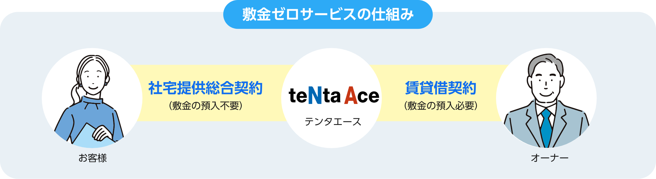 弊社の敷金ゼロサービスは物件所有者(貸主)が倒産し、弊社が敷金回収不能の場合でもお客様へ敷金相当額のお支払いを求めません。