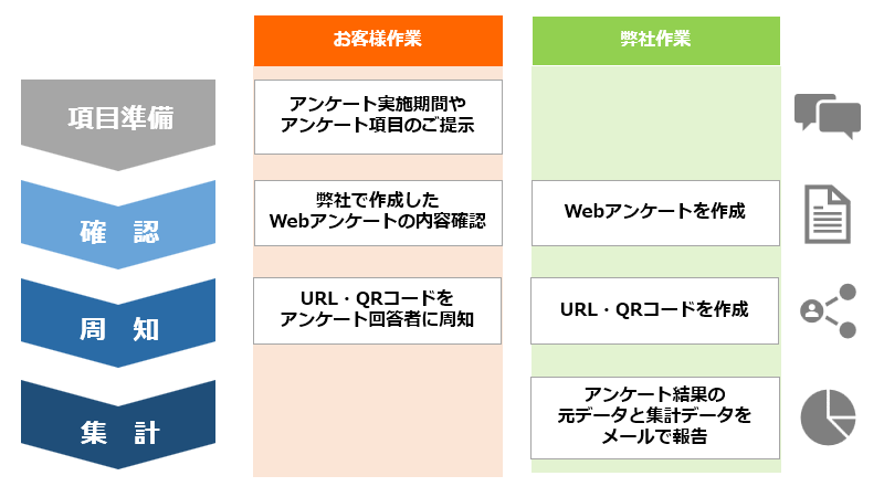 アンケート項目をご提示いただければWebアンケートの作成、回収、集計を代行させていただきます。