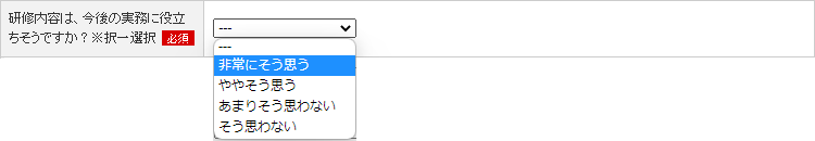 また、自由記述、択一選択、複数選択の項目に対してそれぞれ「必須回答」、「任意回答」が設定できます。