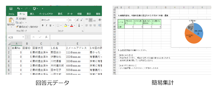 アンケート結果はアンケート期間終了後、回答元データと簡易集計したエクセルファイルを送付させていただきます。