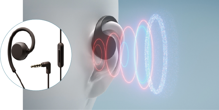 オープンイヤー型イヤホンのデメリットである音漏れをNTT独自技術※2により軽減します。