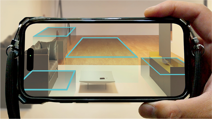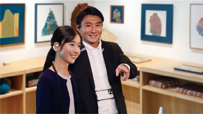 オープンイヤー型イヤホンでも没入感の高い立体音響を再生するNTT独自の音響XR技術※2と、空間スキャン&自己位置推定システム搭載のスマホアプリ※3により、お客様の操作を必要としない音声ガイドを提供します。