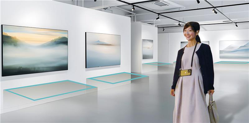 施設への設備追加も不要です。従来のようにQRコードをスキャンしたり、展示番号を押したりする手間がなく、その場に行くだけで音声ガイドを聞くことができ、エリアごとにBGMを流すということもできます。